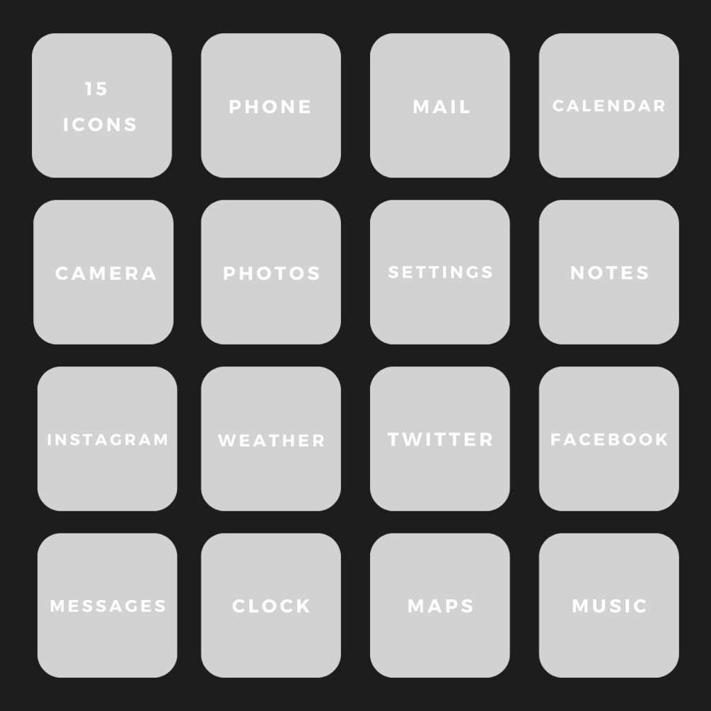 ios icon pack - minimalist WHT&GRY-MC, 15 nos.